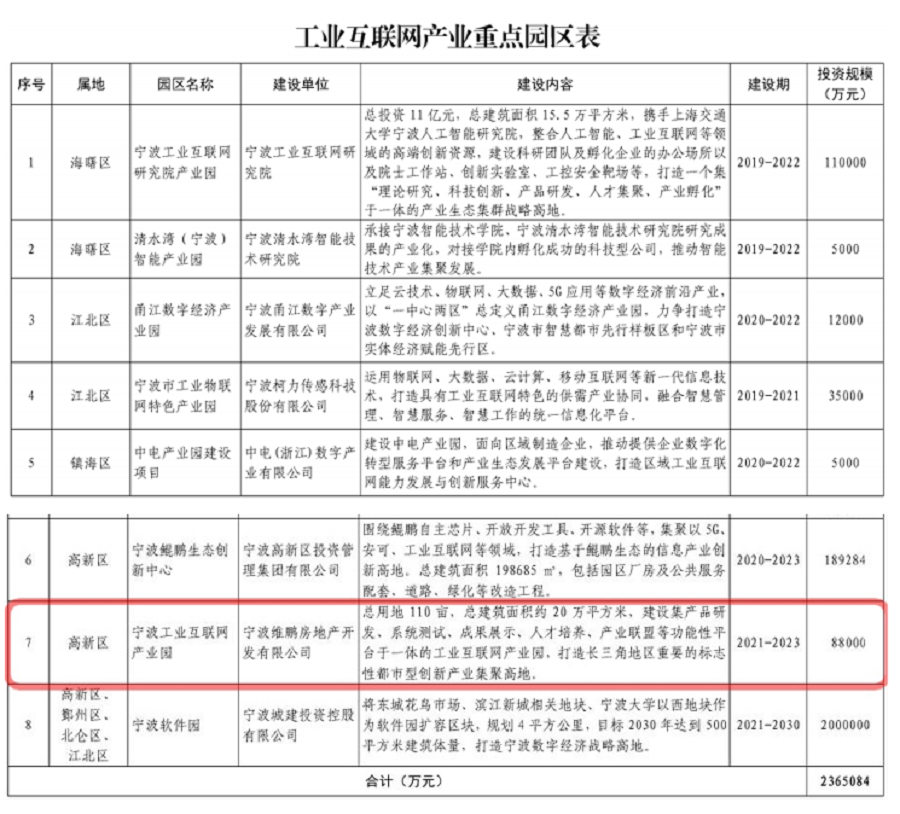 2021年7月2日,寧波市制造業(yè)發(fā)展高質(zhì)量領(lǐng)導小組辦公室印發(fā)關(guān)于《寧波市打造工業(yè)互聯(lián)網(wǎng)領(lǐng)軍城市建設(shè)方案》的通知,由維科集團房產(chǎn)事業(yè)部下屬寧波高新區(qū)云羿開發(fā)建設(shè)有限公司投資建設(shè)的高新項目(即寧波工業(yè)互聯(lián)網(wǎng)產(chǎn)業(yè)園)被該建設(shè)方案列為寧波市工業(yè)互聯(lián)網(wǎng)領(lǐng)域八個重點園區(qū)之一。
