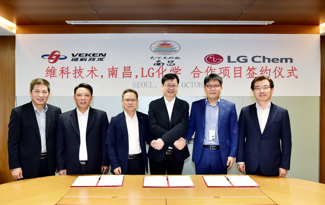 10月25日,維科技術(shù)股份有限公司(簡(jiǎn)稱“維科技術(shù)”,證券代碼:600152)與韓國株式會(huì)社LG化學(xué)、南昌市新建區(qū)政府簽署合作協(xié)議,三方共同出資在南昌市新建區(qū)設(shè)立中外合資企業(yè),從事小型聚合物鋰電池的研究開發(fā)、生產(chǎn)及銷售。維科技術(shù)董事長(zhǎng)何承命、江西省南昌市市長(zhǎng)劉建洋、LG化學(xué)本部長(zhǎng)金鐘現(xiàn)出席簽字儀式并先后致辭表示祝賀,維科技術(shù)總裁楊東文、南昌市新建區(qū)區(qū)長(zhǎng)陳吉煒、LG化學(xué)小電池事業(yè)部長(zhǎng)金東明在合作協(xié)議上簽字。南昌市政府有關(guān)領(lǐng)導(dǎo)、LG化學(xué)電池事業(yè)部有關(guān)負(fù)責(zé)人、維科技術(shù)監(jiān)事長(zhǎng)陳國榮、副總裁陳良琴等也出席了簽字儀式。