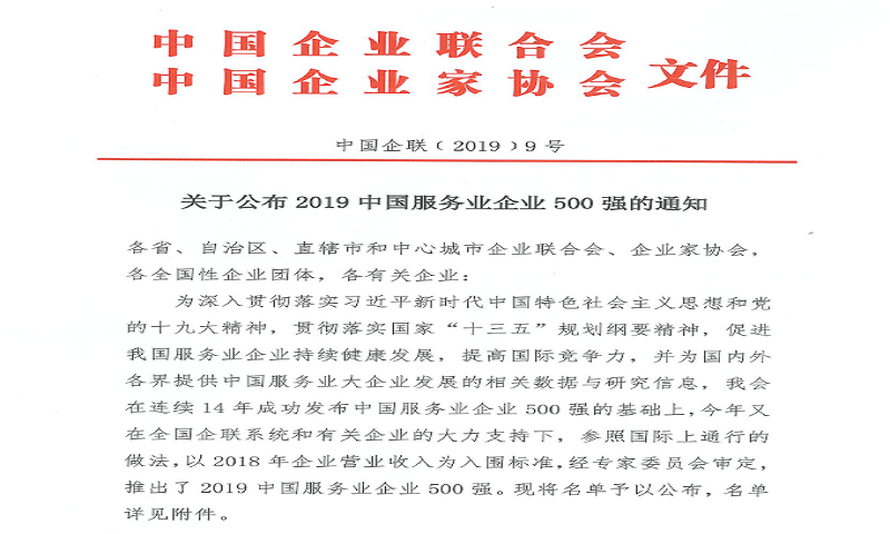 維科集団は「2019年度中國(guó)サービス業(yè)トップ500企業(yè)」の栄譽(yù)を獲得