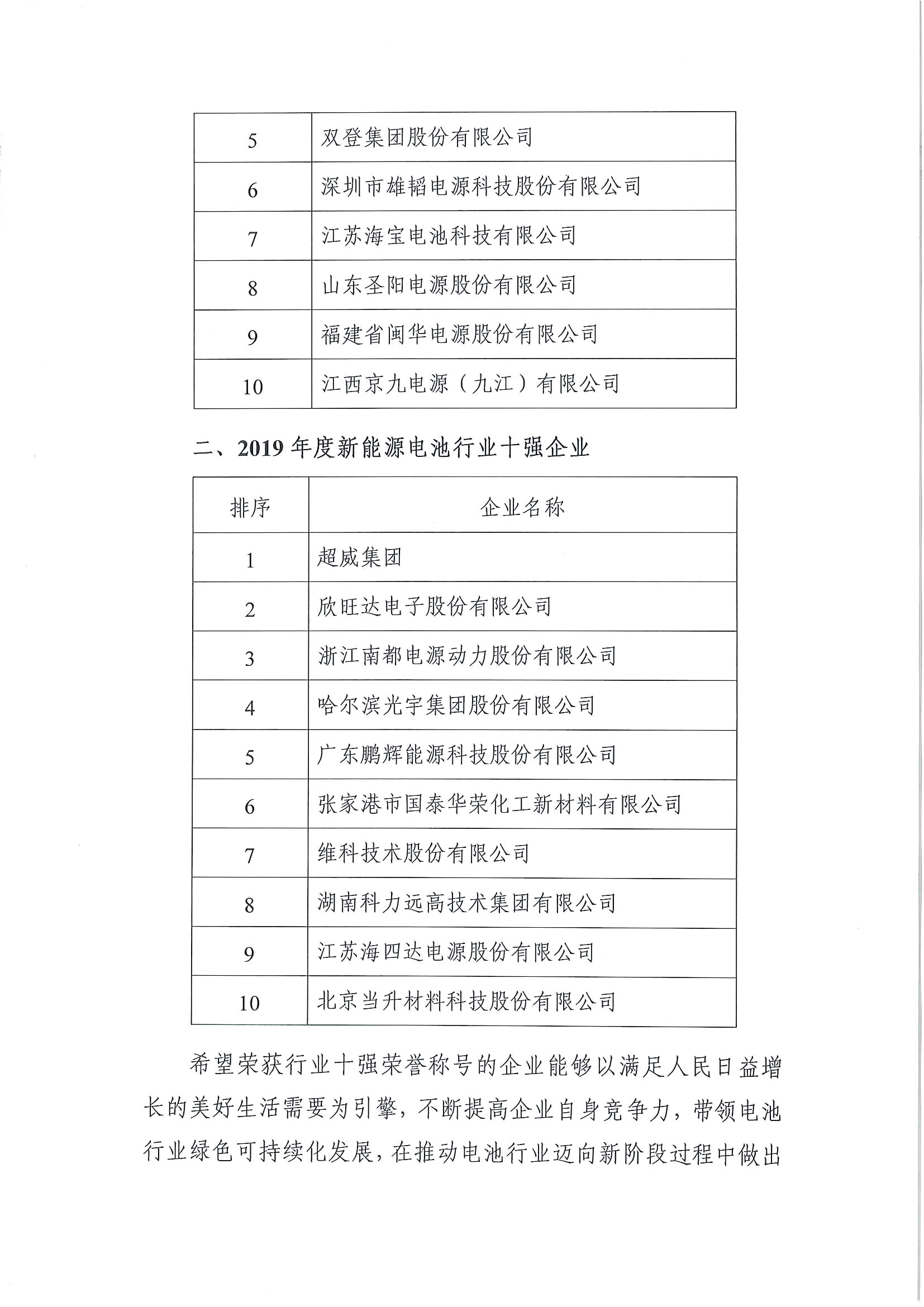2020年7月31日、中國(guó)電池工業(yè)協(xié)會(huì)は「2019年度電池業(yè)界トップ10企業(yè)評(píng)価結(jié)果公告」を発表し、維科技術(shù)は再び新エネルギー電池業(yè)界トップ10企業(yè)にランクされた。